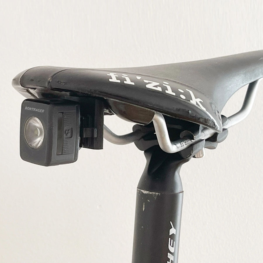 Soporte para colocar una luz bontrager Flare o ion en un sillín Fizik con sistema de enganche ICS.
