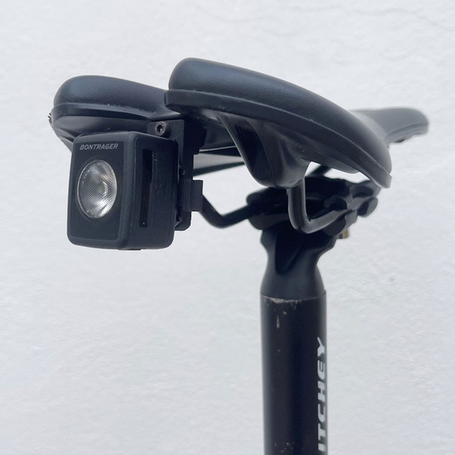 Soporte para colocar una luz Bontrager Ion o Flare en un sillín Giant con sistema de montaje uniclip.